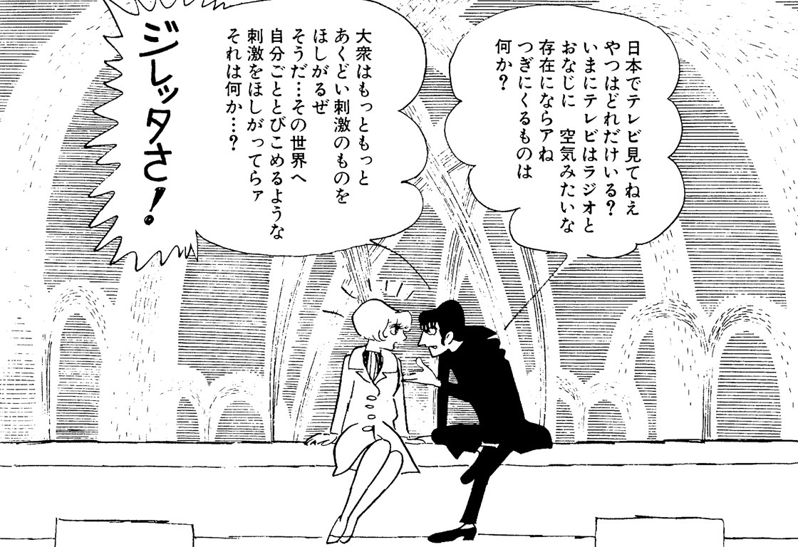 L’idée est à la fois drôle et cuelle dans son rapport au corps et à la beauté. Au fil de la satire attendue des médias, Osamu Tezuka cisèle un vaudeville ubuesque où les apparences priment sur tout. Au bord du malaise, la chanteuse répond tant bien que mal aux exigences du producteur, qui lui saute dessus et la réprimande dès qu’elle a le malheur de s’approcher de la nourriture. Le duo va de Charybde en Scylla, sans compter que le mangaka Otohiko Yamabe, amoureux de la jeune femme (la vraie, l’ordinaire) développe après un accident la capacité de provoquer des hallucinations collectives. Baptisé Diletta, cet autre monde transformé en arme médiatique complique un peu plus la vie du trio.